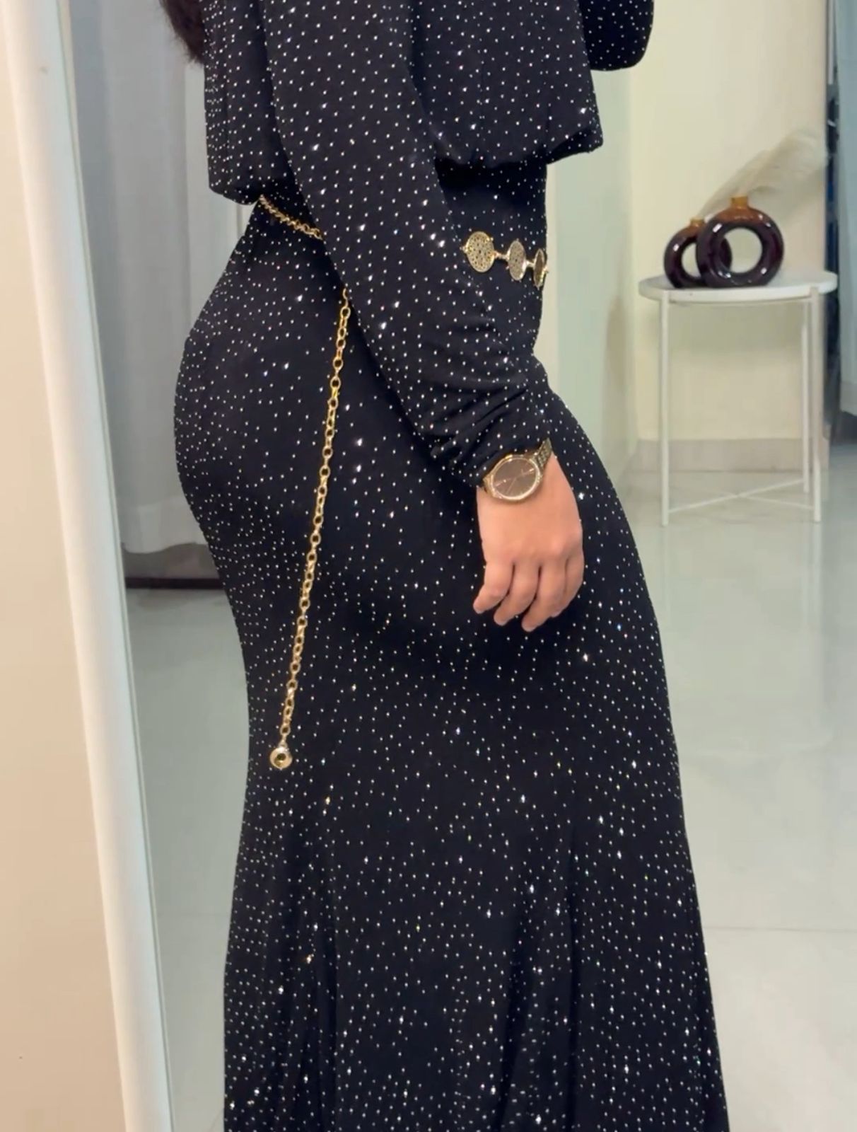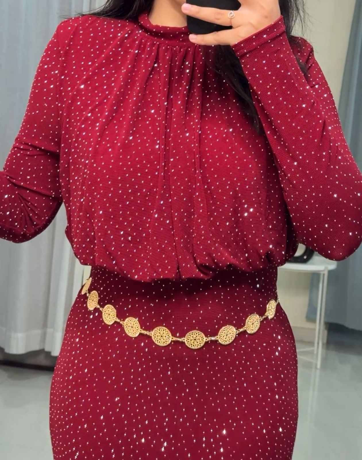 The model in the picture is 5 ft 3 inches and wearing a size M