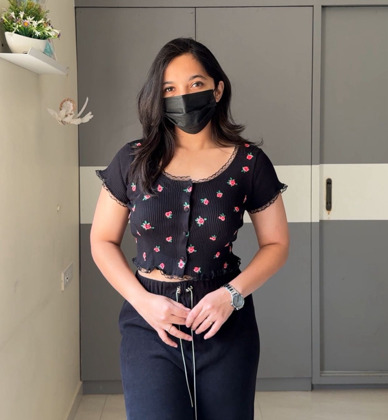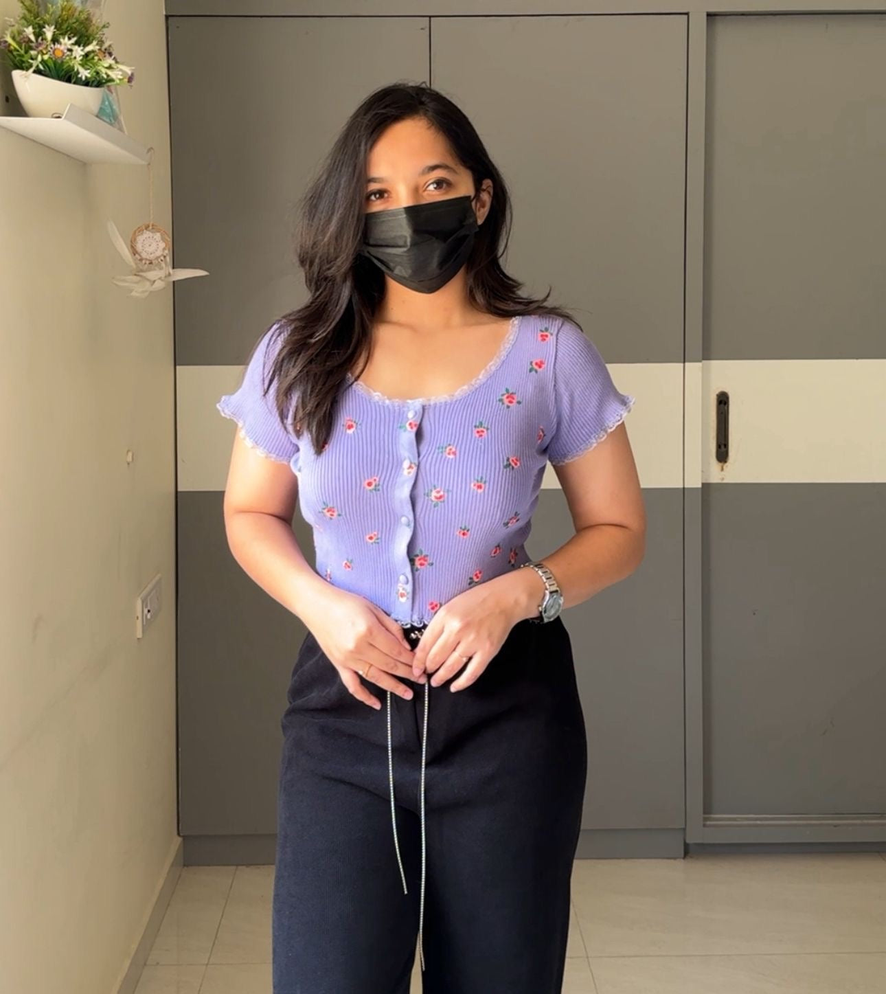 The model in the picture is 5 ft 3 inches and wearing a size M