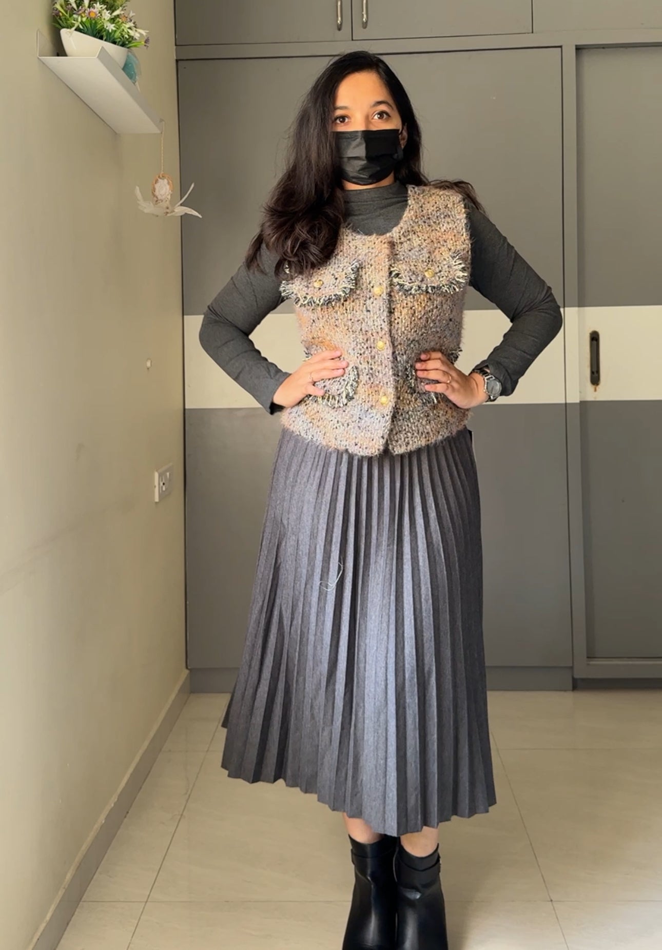 The model in the picture is 5 ft 3 inches and wearing a size M
